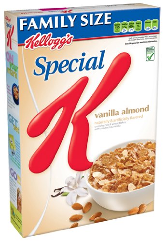 Kellogg's special k vanilla almond cereal, 17.5-ounce packages (pack of 4) are a mixture of crunchy rice and wheat flakes with almonds and vanilla